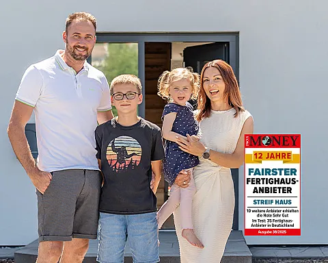 Bereits zwölf Jahre in Folge hat FOCUS-MONEY STREIF als fairsten Fertighausanbieter prämiert. Diese kontinuierliche Anerkennung spiegelt unsere langjährige Erfahrung, nachhaltige Bauweise und die hohe Zufriedenheit unserer Kundinnen und Kunden wider.