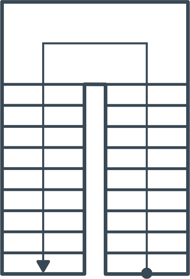 Bei einer Faltwerktreppe sind die Setzstufen und die Trittstufen in gleicher Materialstärke ausgeführt. Das charakteristische Design entsteht, weil es keine Überschneidung der Stufen gibt.