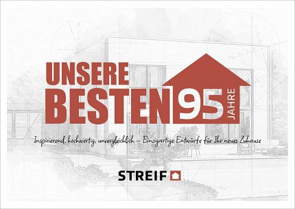 Die STREIF-Standardausführung ist die Premiumline. Sie bietet eine gedämmte Fundamentplatte. Die Fenster können außen farbig und innen in Weiß ausgeführt werden. Eine hochwertige Holzhaustür mit 5-fach-Sicherheitsverriegelung ist ein weiteres Highlight. Außerdem haben Sie eine größere Auswahl an Materialien z. B. bei den Fliesen. Die Premiumline bietet den besseren Effizienzhaus-40-Standard.