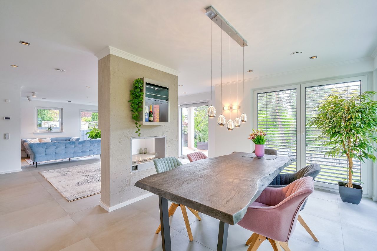 das Musterhaus in Wildau bei Berlin wurde in einer Hanglage mit dem Ausbau eines Wohnkellers geplant und gebaut. Weitere Highlights sind ein überdachter Freisitz, eine Dachterrasse, firsthoch offene Schlafräume mit Wohnraumanschlussfenstern, ein exklusiver Wohnbereich mit Eckfenstern, ein moderner Geschosserker, eine Photovoltaik-Anlage mit Batteriespeicher und vieles mehr. Lassen Sie sich begeistern!