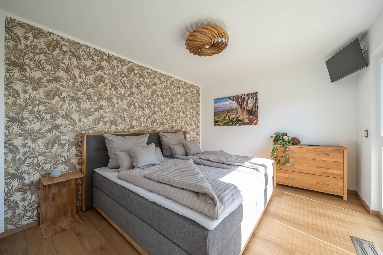 Im Obergeschoss befindet sich ein großes Arbeitszimmer mit Zugang zur herrlichen Dachterrasse, ein Schlafzimmer mit Ankleidebereich und ein großes Wellnessbad mit Sauna. Die Dachterrasse ist auch über den geräumigen Flur erreichbar. Das Interieur und die Ausstattung des Musterhauses in Dresden-Schönfeld sind modern und gemütlich zugleich. Das gesamte Styling besticht durch helle, freundliche Farben und Holzakzente. Die zahlreichen Fensterelemente durchfluten die Räume mit Tageslicht und maximieren die Großzügigkeit der Räume. Es entsteht ein Lebensgefühl von Offenheit und Behaglichkeit. In puncto Haustechnik beeindruckt das Musterhaus mit einem innovativen Luft-Wasser-Wärmepumpensystem, einer Photovoltaikanlage mit Batteriespeicher zur Stromerzeugung und einem Smart-Home-System. Es erfüllt den Energieeffizienzhaus-Standard KfW 40 Plus. Das Musterhaus kann besichtigt werden. Auf der STREIF-Webseite gibt es einen virtuellen Rundgang durch das neue Musterhaus.