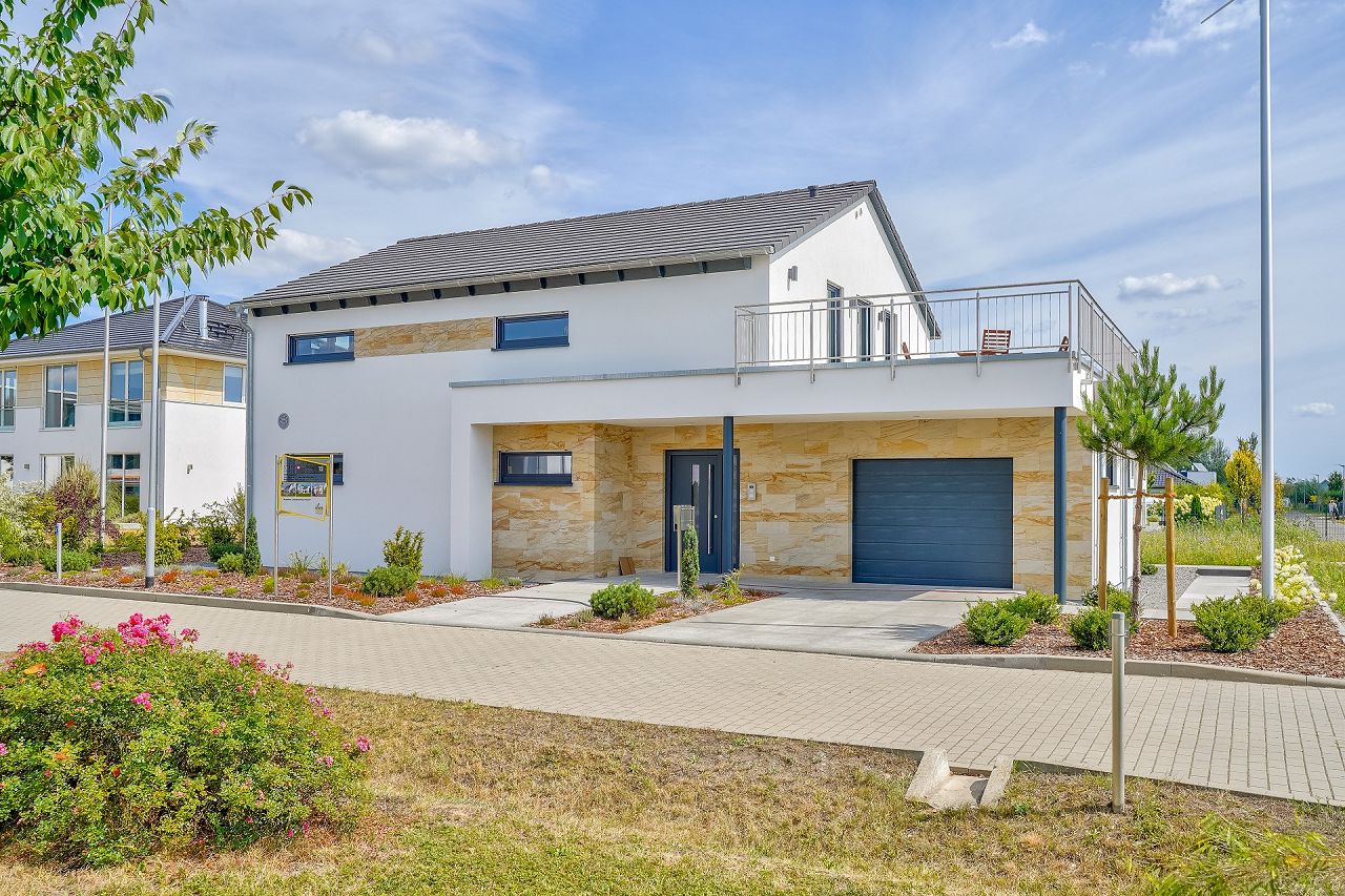 Herzlich willkommen bei STREIF in Werder, das neue Musterhaus von STREIF in Werder punktet mit einer modernen Gebäudearchitektur, einer gehobenen Ausstattung und einer innovativen Haustechnik. In der Architektur des Energiesparhauses schmiegt sich die Garage ans Haus an.