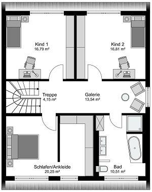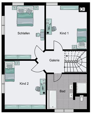 - Zwei Vollgeschosse ohne Dachschrägen (je nach Hauskonzept)
