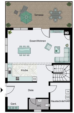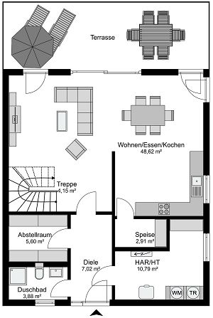 - Integration von Haustechnik, Hauswirtschaft und Lagerflächen
