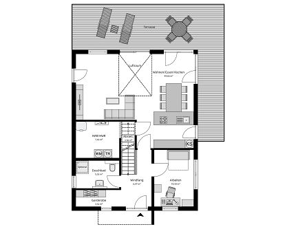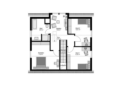 Auch architektonische Faktoren beeinflussen die Grundrissgestaltung: Dachform, Fassadenstruktur, Ausrichtung auf dem Grundstück und gewünschte Zusatzfunktionen wie Garage, Carport oder Keller fließen direkt in die Planung ein. Ein klassischer Einfamilienhaus Grundriss zeichnet sich durch klare Achsen, gute Erschließung und harmonische Raumproportionen aus – lässt sich bei STREIF aber jederzeit modernisieren und individuell anpassen.
