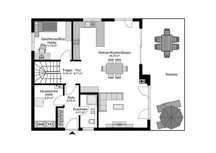 Typische Grundriss-Ideen für Einfamilienhäuser: