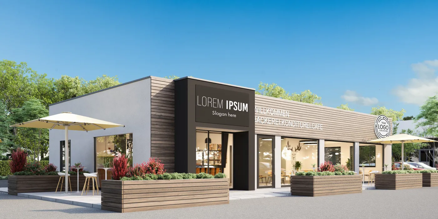 Der Kubusbau bringt auch ein Konzept mit, wie Sie das Gebäude für Ihre Markenbotschaft nutzen können. Die Fassadengestaltung kann in Putz oder auch mit einer Teilholzverkleidung oder Klinkerfassade realisiert werden. Große Panoramafenster sind vorteilhaft für alle, die im Gebäude sind und ziehen die Aufmerksamkeit auf alle, die am Gebäude vorbeifahren oder gehen. Hier finden Sie ein Umsetzungsbeispiel für einen Bakery Cube.