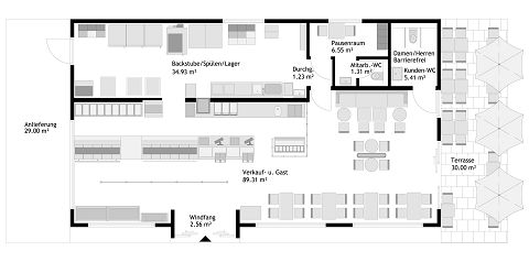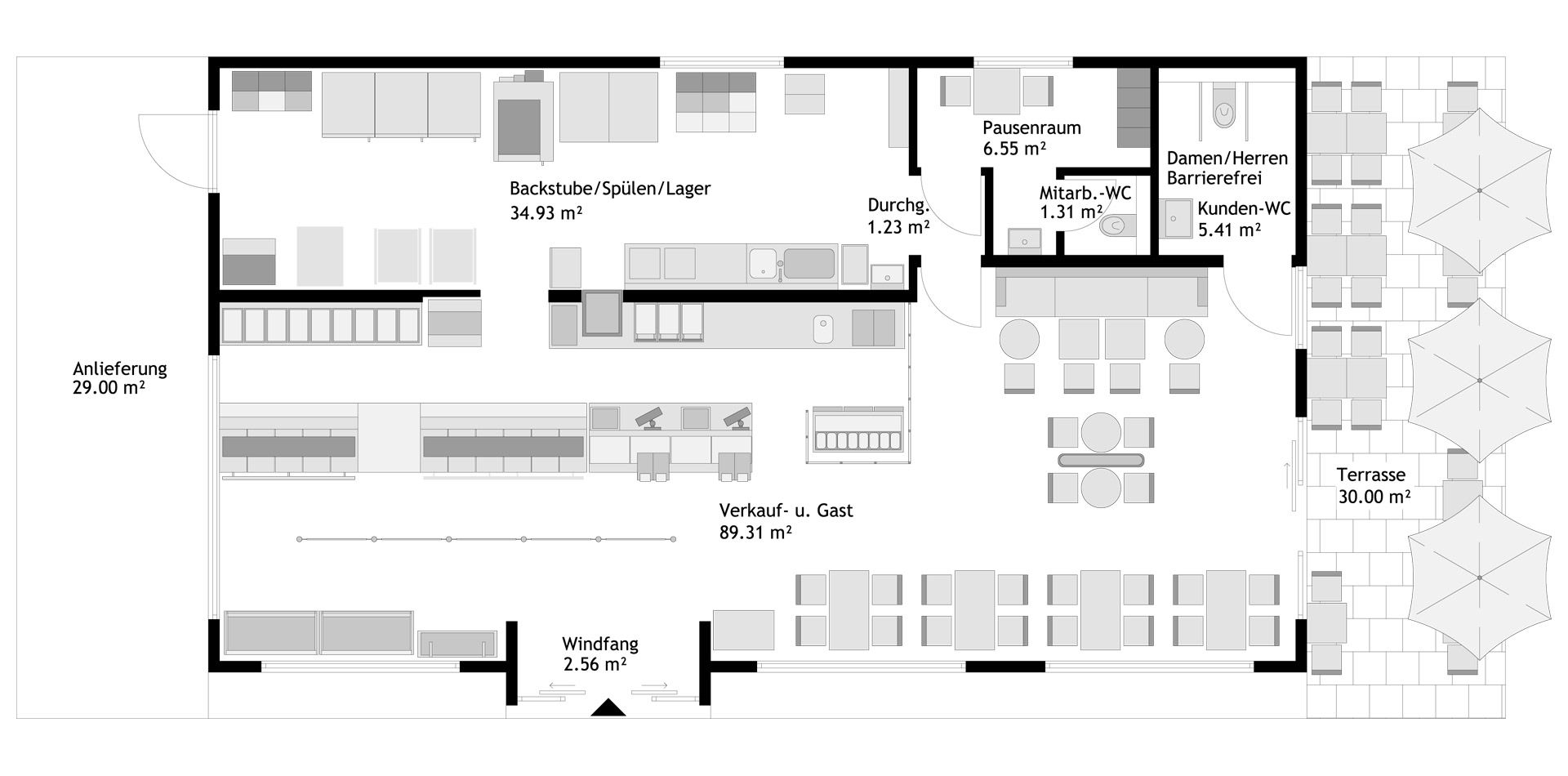 - Optional: Sitzplätze für die Bewirtung innen/außen
