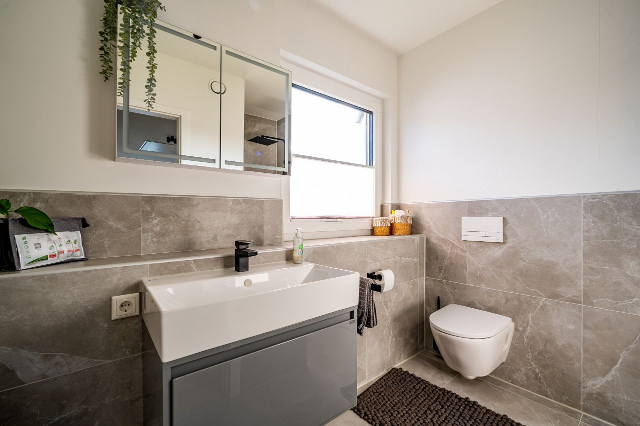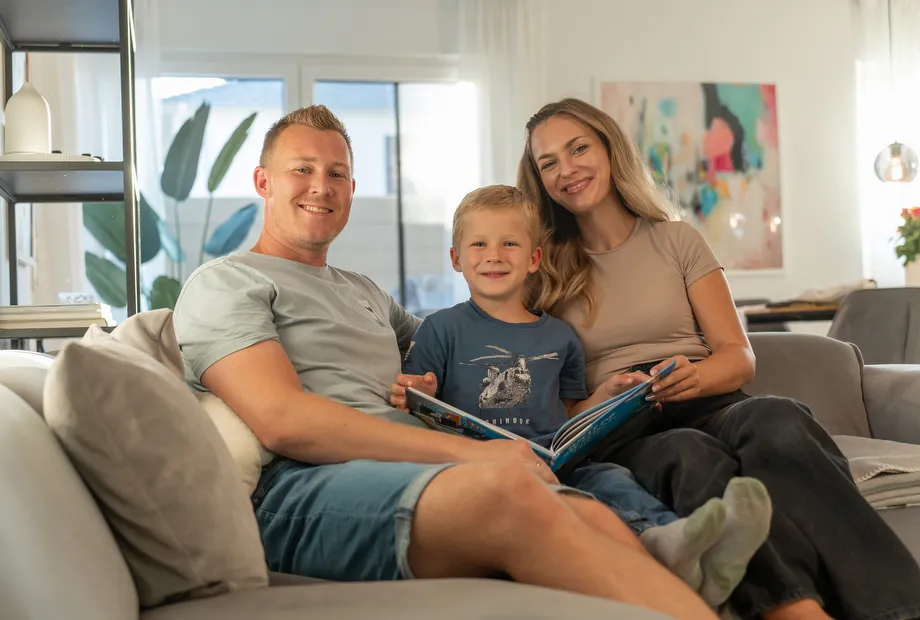 „Wir sind sehr zufrieden mit dem Haus und der Qualität. Vor allem der schnelle Aufbau hat uns begeistert und wir würden jederzeit wieder mit Streif bauen. Am besten gefällt uns die Energieeffizienz und die modulare Erweiterungsmöglichkeit bei der Bauplanung. Durch die Wärmepumpe mit Lüftungsfunktion hat man stets frische, staubarme Luft im Haus. Es gibt nie die Notwendigkeit, die Fenster zum Lüften zu öffnen, da die Luft immer automatisch ausgetauscht und gleichzeitig zum Heizen innerhalb der Wärmepumpe genutzt wird. Im Winter wird die Raumluft beim Heizen etwas trocken, dies sollte man bedenken. In Verbindung mit unserer Photovoltaik-Anlage ist dies eine sehr moderne, effektive Technik. Die Bauberatung machte zunächst einen guten Eindruck und war schnell und unkompliziert bis zur Unterschrift. Danach wurden wir leider im Stich gelassen und Kontakt war kaum noch vorhanden. Man musste sich als Laie selbst kümmern, damit der Hausbau nicht monatelang zum Erliegen kam. Der Kontakt über das Kundenportal „meinstreifhaus“ ist praktikabel und Anfragen werden meist innerhalb weniger Tage beantwortet. Die Bemusterung konnte aufgrund der Corona-Pandemie leider nicht so stattfinden wie gewöhnlich. Daher konnten wir unser Streif Haus nur “Technik fertig” bauen lassen. Die Ausgestaltung der Bäder mussten wir extern vergeben, das hätten wir gern aus einer Hand machen lassen.“