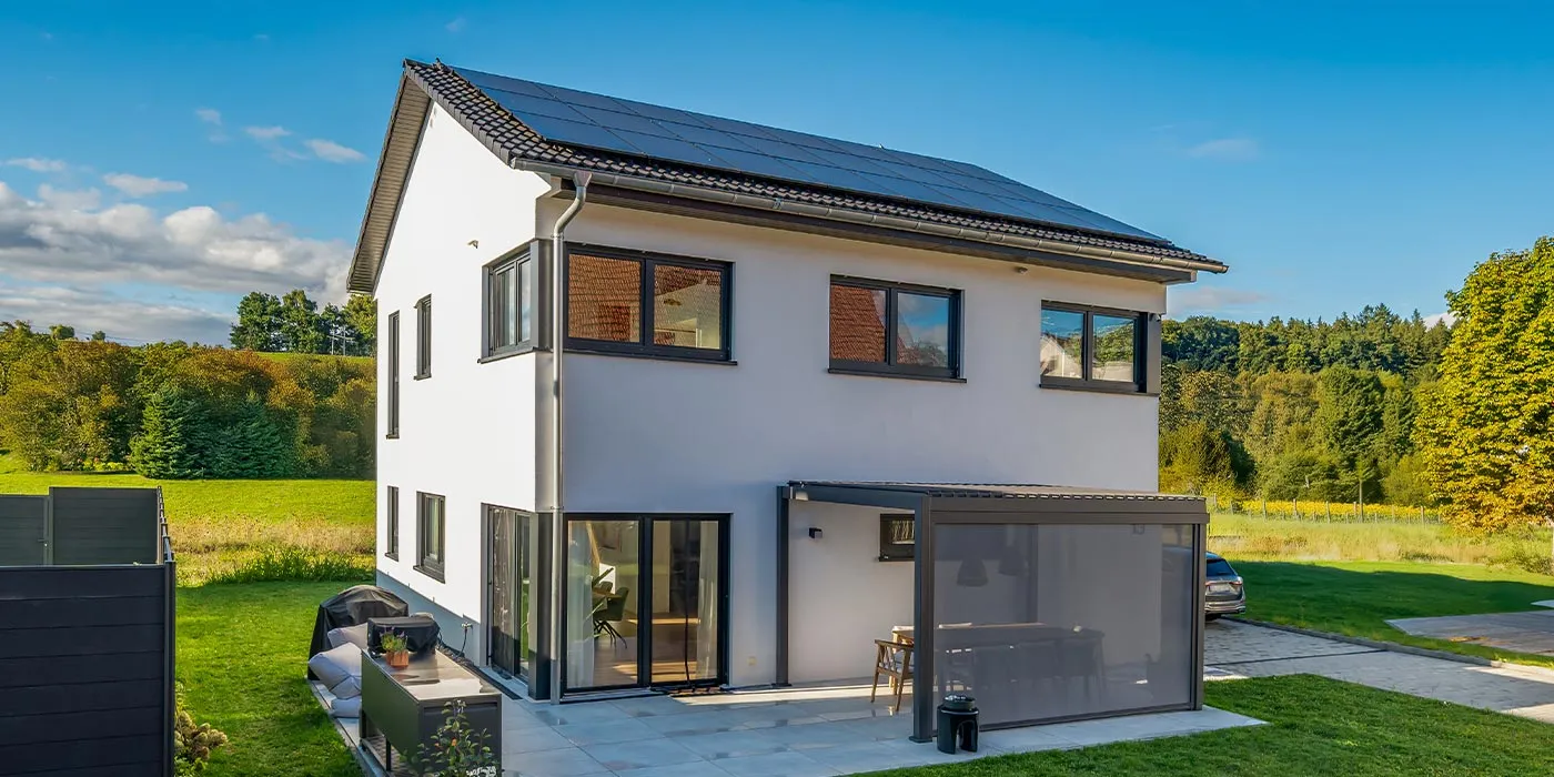Haustechnik: Luft-Luft-Wärmepumpen-Technologie mit integrierter Be- und Entlüftung mit Wärmerückgewinnung und Warmwasserbereitung; Photovoltaik-Anlage