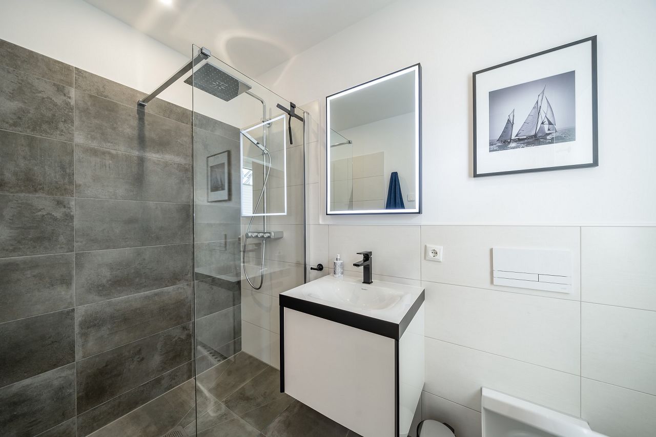 Das Dachgeschoss punktet mit bodentiefen Fenstern mit festverglaster Brüstung in den Schlafräumen und zusätzlichen Dachfenstern, die viel Licht in die Räume bringen. Zwei Kinderzimmer, ein Elternbereich mit Ankleide und ein großes familienfreundliches Bad sind auf 88,53 m² großzügig angeordnet.