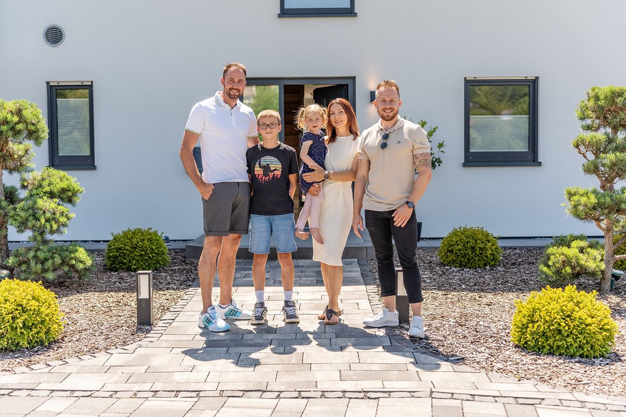 „Wir sind sehr zufrieden mit unserem STREIF-Haus. Durch die sehr gute Wärmedämmung ist das Raumklima in unserem Haus im Sommer wie im Winter prima. Wir sind seit 2019 in unserem Haus und mit der Haustechnik gab es bisher 0,0 Probleme. Besonders hervorheben möchten wir die erstklassige Beratung und Betreuung durch unseren Bauberater Björn Kipphen. Er hat uns zum Thema Hausbau abgeholt und mehr als fachkundig mit Rat und Tat zur Seite gestanden. Großes Lob. Auch ein großes Dankeschön an Herrn Schmidt, unseren Bauleiter, der uns während der gesamten Bauphase JEDERZEIT telefonisch und vor Ort mit sämtlichen Anliegen unterstützt hat.“