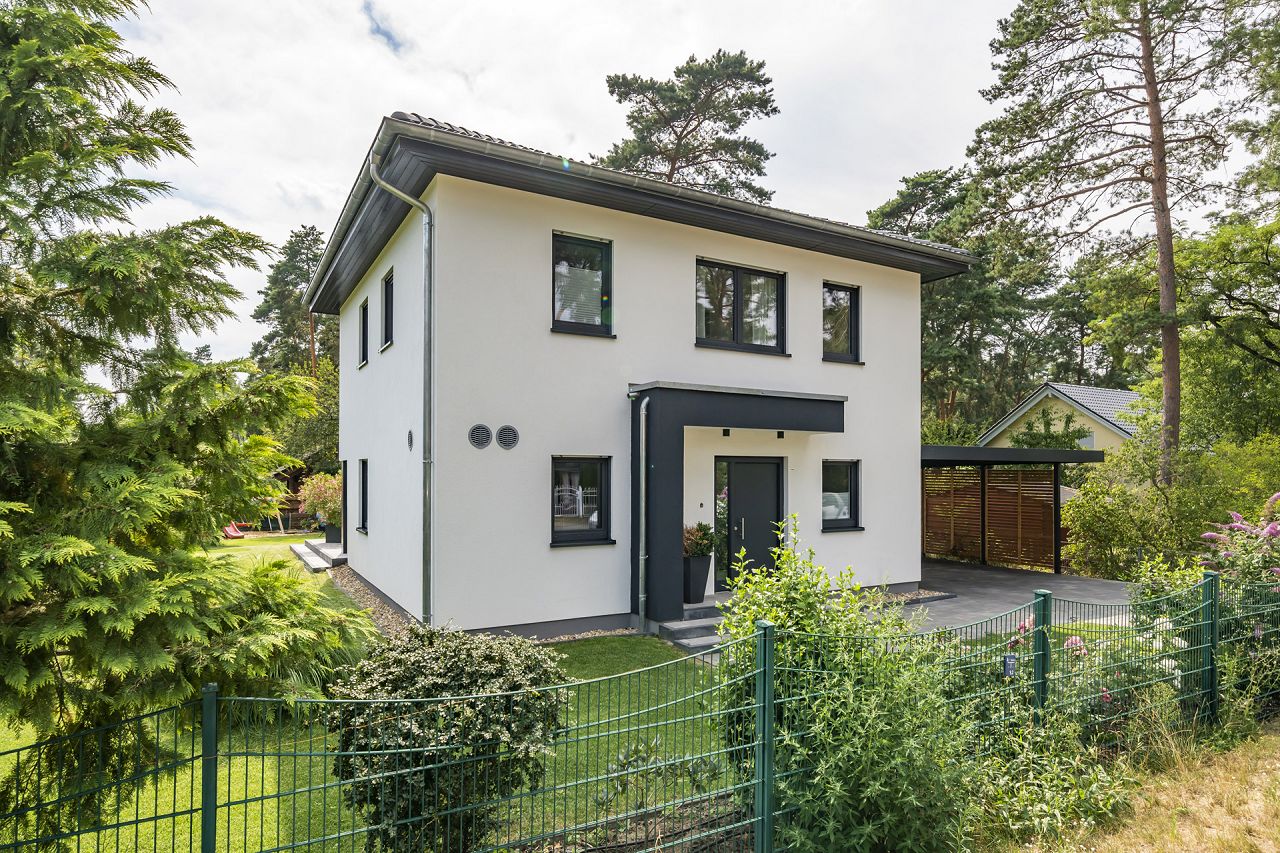 Bauart: Stadtvilla, 2-geschossig mit Walmdach und Carport