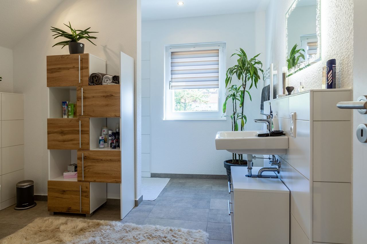 „Im Ausstattungszentrum haben wir uns sehr wohl gefühlt. Unser Bauberater hat uns begleitet. Bei der Elektroplanung hat der Ausstattungsberater uns sehr gute Ideen und Tipps geliefert, sodass heute alles perfekt ist. Bei der Farbwahl der Fliesen haben wir uns für neutrale, helle Farben als Basis entschieden."