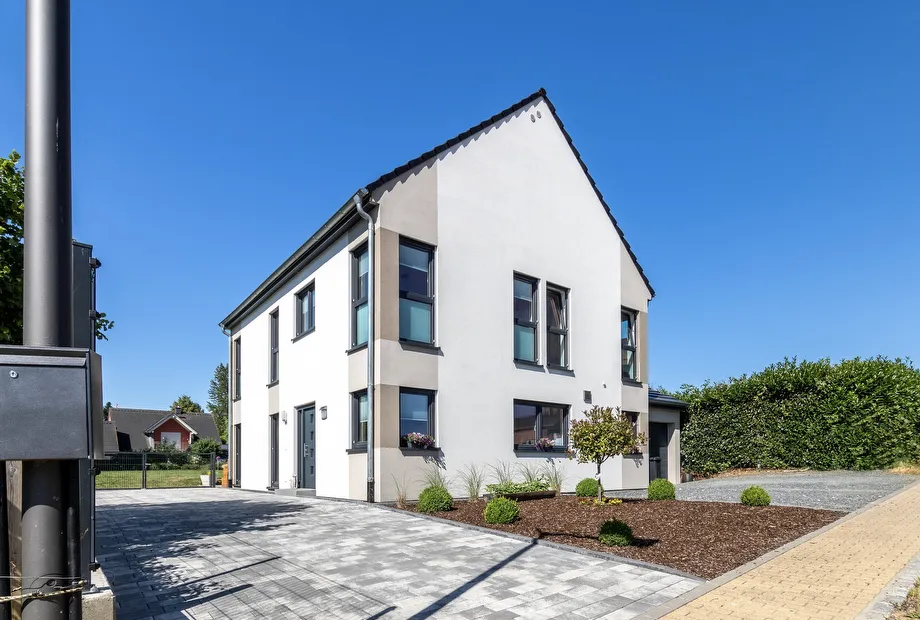 Bauart: Modernes Einfamilienhaus, 2-geschossig, Energieeffizienzhaus