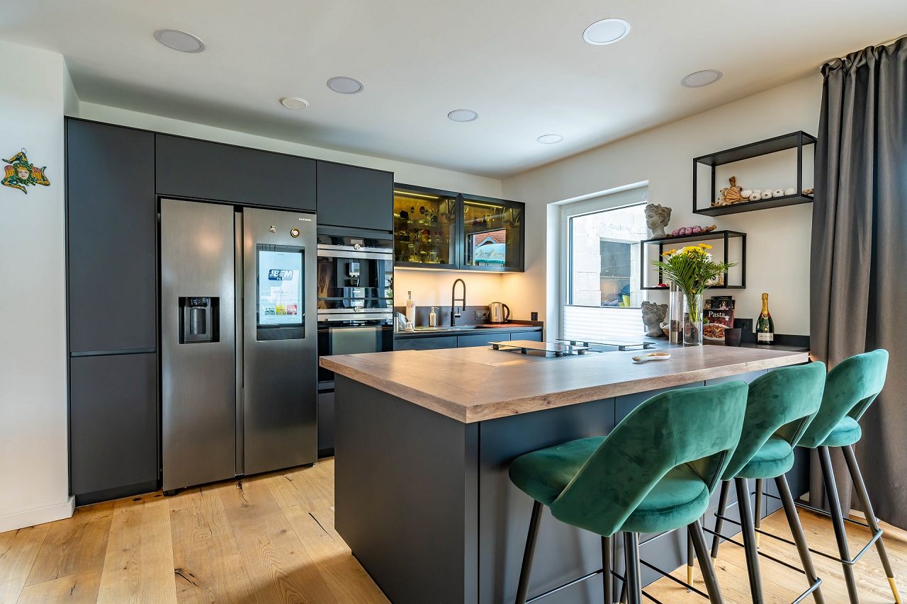 Der Neubau der eleganten Stadtvilla mit Zeltdach basiert auf einem überaus durchdachten Grundriss. Das Bauherrenpaar hat, nach dem Auszug ihrer drei Kinder, für die neue Lebensphase ein perfekt zugeschnittenes Maß an Wohnkomfort realisiert.