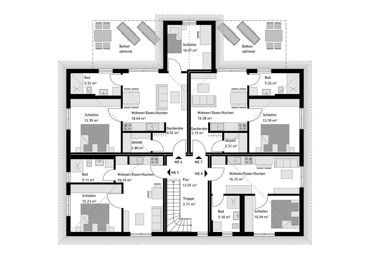 Architektur und Grundrissgestaltung des Mehrfamilienhauses