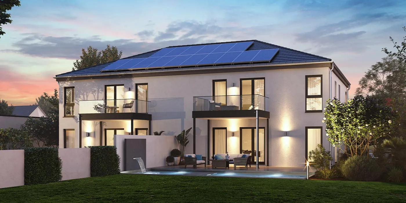 Dank der Holztafelbauweise überzeugt dieses Mehrfamilienhaus nicht nur architektonisch, sondern auch durch Nachhaltigkeit, hervorragende Wärmedämmung und ein gesundes Raumklima – ein zukunftsweisendes Wohnkonzept mit hoher Lebensqualität.