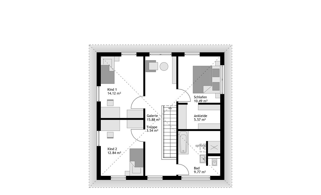- Optional ist das Obergeschoss auch mit einem zusätzlichen Kinderbad planbar