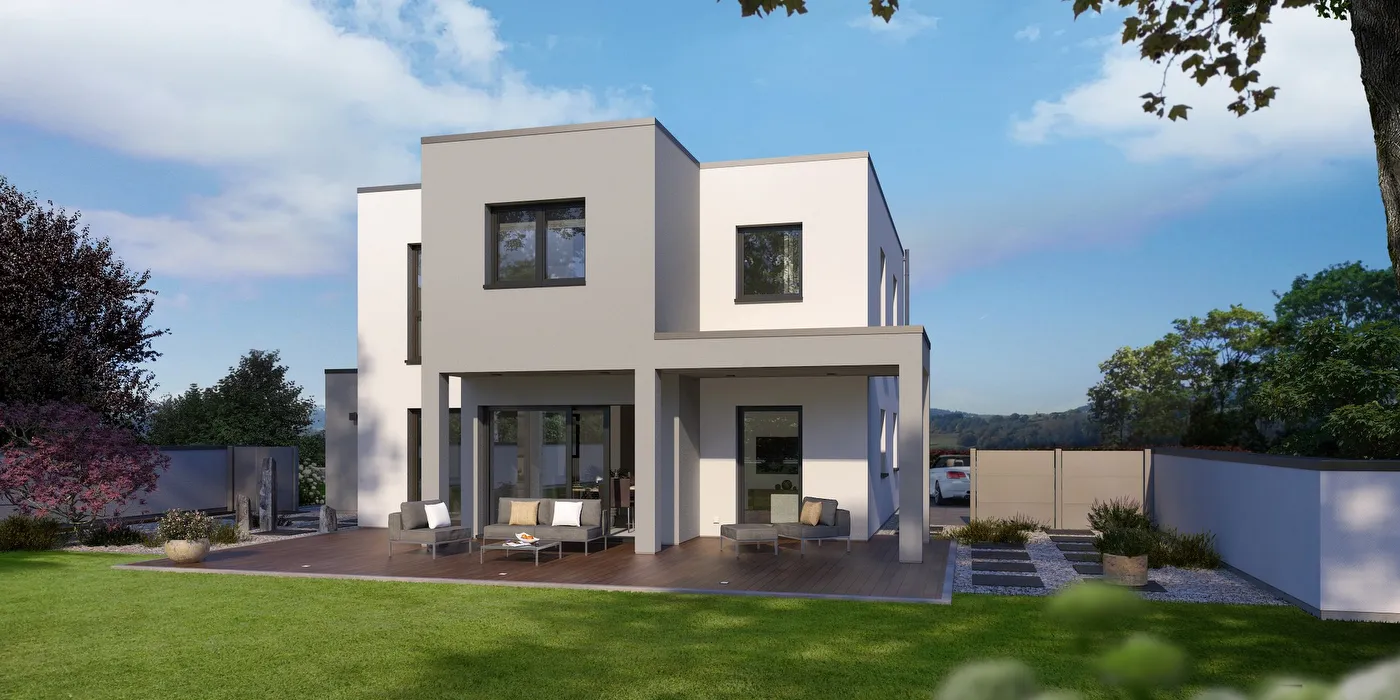Elegante Stadtvilla im Bauhausstil: Anpassbar mit überdachter Terrasse