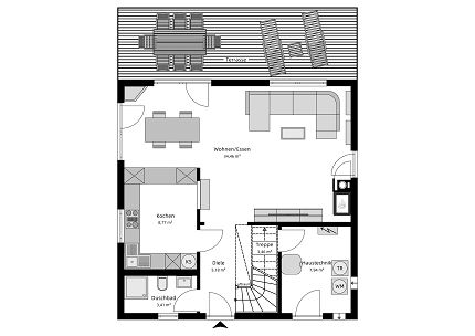 • Offene Erdgeschosslösung mit zentralem Wohnbereich