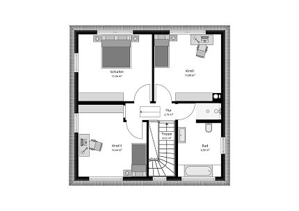 Ein Grundriss bis 140 qm bietet eine perfekte Balance aus Raumangebot und effizienter Flächennutzung. Diese Variante eignet sich ideal für Paare oder Familien mit bis zu zwei Kindern. Trotz der kompakten Größe lassen sich alle wichtigen Wohnfunktionen realisieren - vom offenen Wohn-Ess-Bereich im Erdgeschoss bis hin zu drei vollwertigen Zimmern im Obergeschoss.