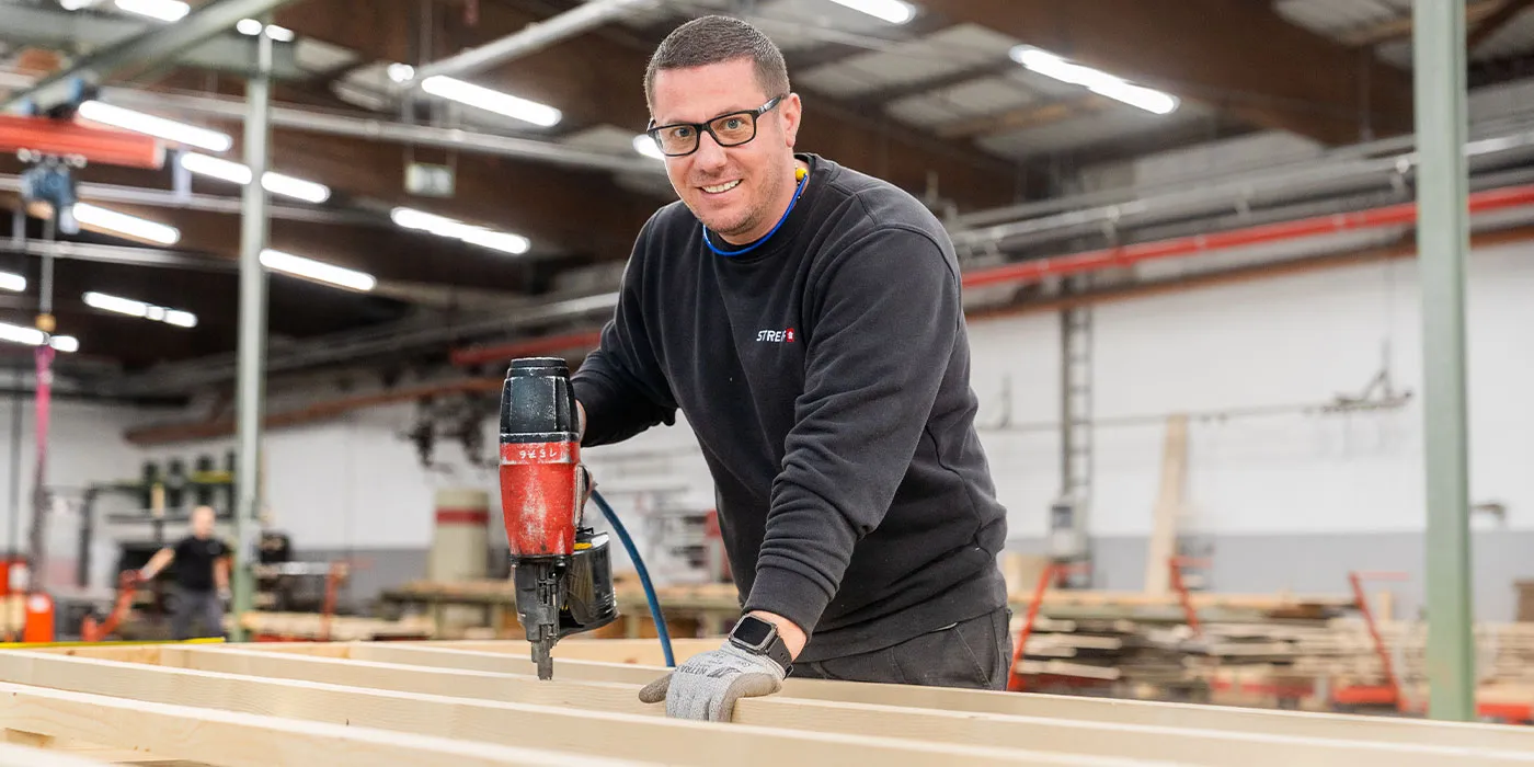 Die Wände unserer STREIF-Energiesparhäuser stellen mit ihren hervorragenden Dämmwerten die wichtigsten Hausbauteile dar. Diese Wandkonstruktion besteht aus verschiedenen Schichten, die von einem massiven Holzständerwerk getragen werden. Unsere Teams sind für den Zusammenbau verschiedener Hausbauteile, insbesondere der Außen- und Innenwände in Holzständerwerk-Bauweise inkl. des hochwertigen Wärmedämmverbundsystems zuständig.