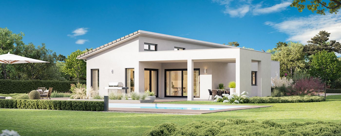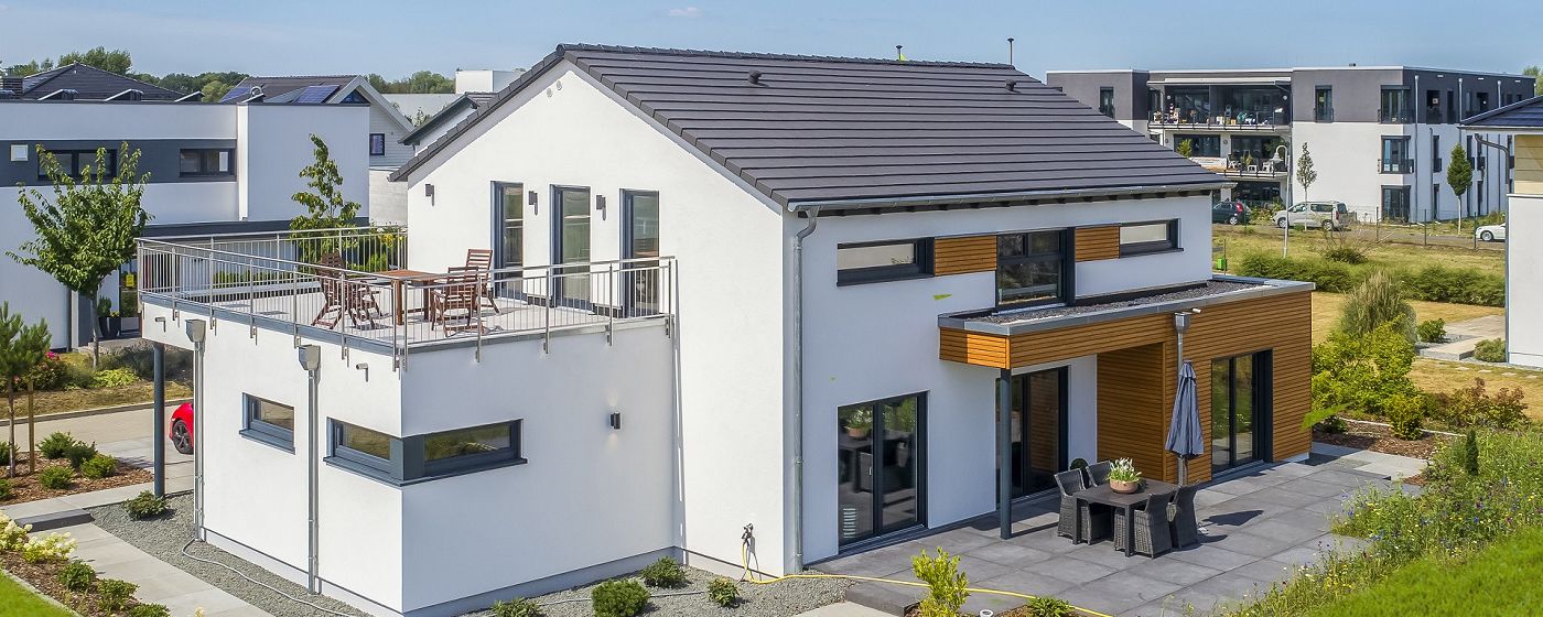 Die wesentlichen Gestaltungselemente, die die Architektur Ihres zukünftigen Zuhauses ausmachen, sind die Dachform, die Größe und Anordnung der Fenster und Terrassentüren, eventuelle Anbauteile, wie eine Haustür- oder Terrassenüberdachung, Gauben, Erker oder Balkone. Gemeinsam mit der Fassadengestaltung und der Haustür verleihen sie Ihrem Haus Individualität und strahlen die Einzigartigkeit aus, die Sie sich wünschen.